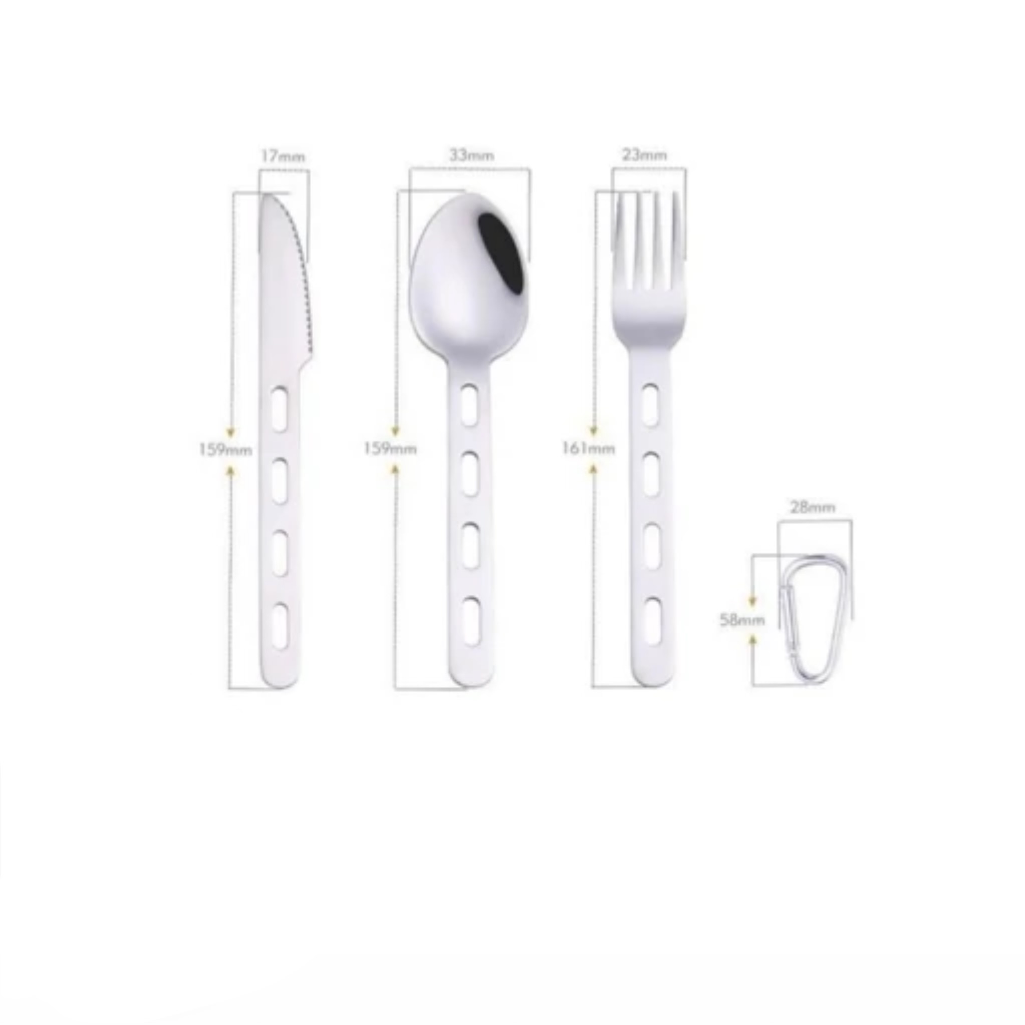ست قاشق چنگال و کارد Black Deer از استیل ضد زنگ با بالاترین کیفیت ممکن ساخته شده است . نکته بارز در مورد این ست , ابعاد آن می باشد که هر سه قاشق و چنگال و کارد دارای طول حدودی 16 سانتی متر می باشند و فضای کمی را در داخل کوله پشتی اشغال می کنند . همچنین این سه تکه توسط یک عدد کارابین فلزی به هم متصل می شوند و مانع گم شدن و جدا شدن آنها از یکدیگر می شود . – استفاده از استیل ضدزنگ Steel Stainless در ساختار بدنه قاشقچنگال و چاقو طراحیشده برای طبیعتگردی، کمپینگ و کوهنوردی – داراي یک کارابین کوچک جهت اتصال و جلوگیري از مفقود شدن هر سهوسیله – فوقالعاده سبک با ابعاد مناسب – قابلیت شستوشو در ماشین ظرفشویی ابعاد قاشق : 3/6×15/8 سانتیمتر ابعاد چنگال : 2/5×15/5 سانتیمتر ابعاد چاقو : 1/5×15/5 سانتیمتر جنس : استیل ضد زنگ با روکش تتانیوم وزن : 100 گرم