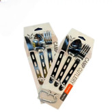 ست قاشق چنگال و کارد Black Deer از استیل ضد زنگ با بالاترین کیفیت ممکن ساخته شده است . نکته بارز در مورد این ست , ابعاد آن می باشد که هر سه قاشق و چنگال و کارد دارای طول حدودی 16 سانتی متر می باشند و فضای کمی را در داخل کوله پشتی اشغال می کنند . همچنین این سه تکه توسط یک عدد کارابین فلزی به هم متصل می شوند و مانع گم شدن و جدا شدن آنها از یکدیگر می شود . – استفاده از استیل ضدزنگ Steel Stainless در ساختار بدنه قاشقچنگال و چاقو طراحیشده برای طبیعتگردی، کمپینگ و کوهنوردی – داراي یک کارابین کوچک جهت اتصال و جلوگیري از مفقود شدن هر سهوسیله – فوقالعاده سبک با ابعاد مناسب – قابلیت شستوشو در ماشین ظرفشویی ابعاد قاشق : 3/6×15/8 سانتیمتر ابعاد چنگال : 2/5×15/5 سانتیمتر ابعاد چاقو : 1/5×15/5 سانتیمتر جنس : استیل ضد زنگ با روکش تتانیوم وزن : 100 گرم