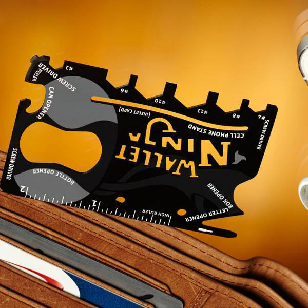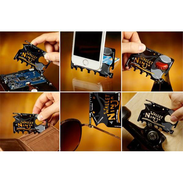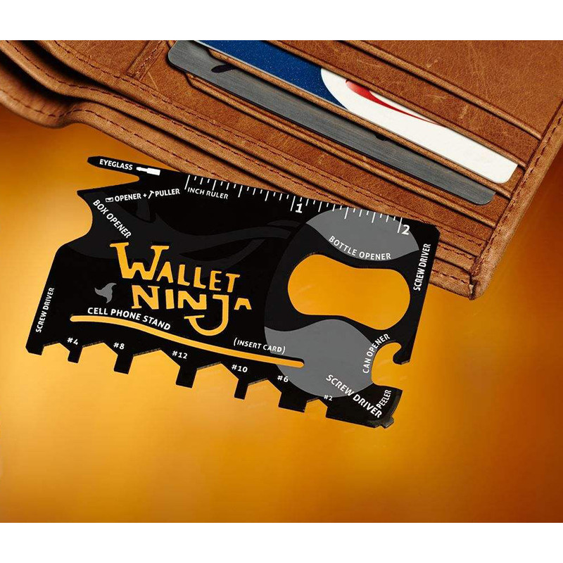 در بسیاری از مواقع، استفاده از ابزارهای چندکاره با استقبال زیادی مواجه است. تهیهی اینگونه ابزارها با توجه به سایز کوچک و اشغال فضای کمتر نسبت به چند ابزار مختلف با کاربرد مشترک، بسیار بهصرفه و منطقی به نظر میرسند. میخواهیم ابزار چندکارهای را به شما معرفی کنیم که ابعادی نزدیک به یک کارت اعتباری دارد. با این ابزار میتوانید 18 کار مختلف را انجام دهید. بازکردن یا بستن پیچهایی با سری ششگوش یا پیچهای دوسوی ریز، بازکردن درب انواع بطری، قوطی و جعبه ازجمله کارهایی است که میتوان با این محصول انجام داد؛ همچنین میتوان از این وسیله، بهعنوان چاقو و حتی پایهی گوشی همراه استفاده کرد. ابعاد و سایز این ابزار در حدی است که میتوانید آن را در کیف پول خود قرار دهید. در سفر و گردش، این محصول میتواند در موارد متعددی به کار شما بیاید. نام این محصول Ninja Wallet است که این عنوان با توجه به سایز کوچکش، برای این ابزار انتخاب شده است.